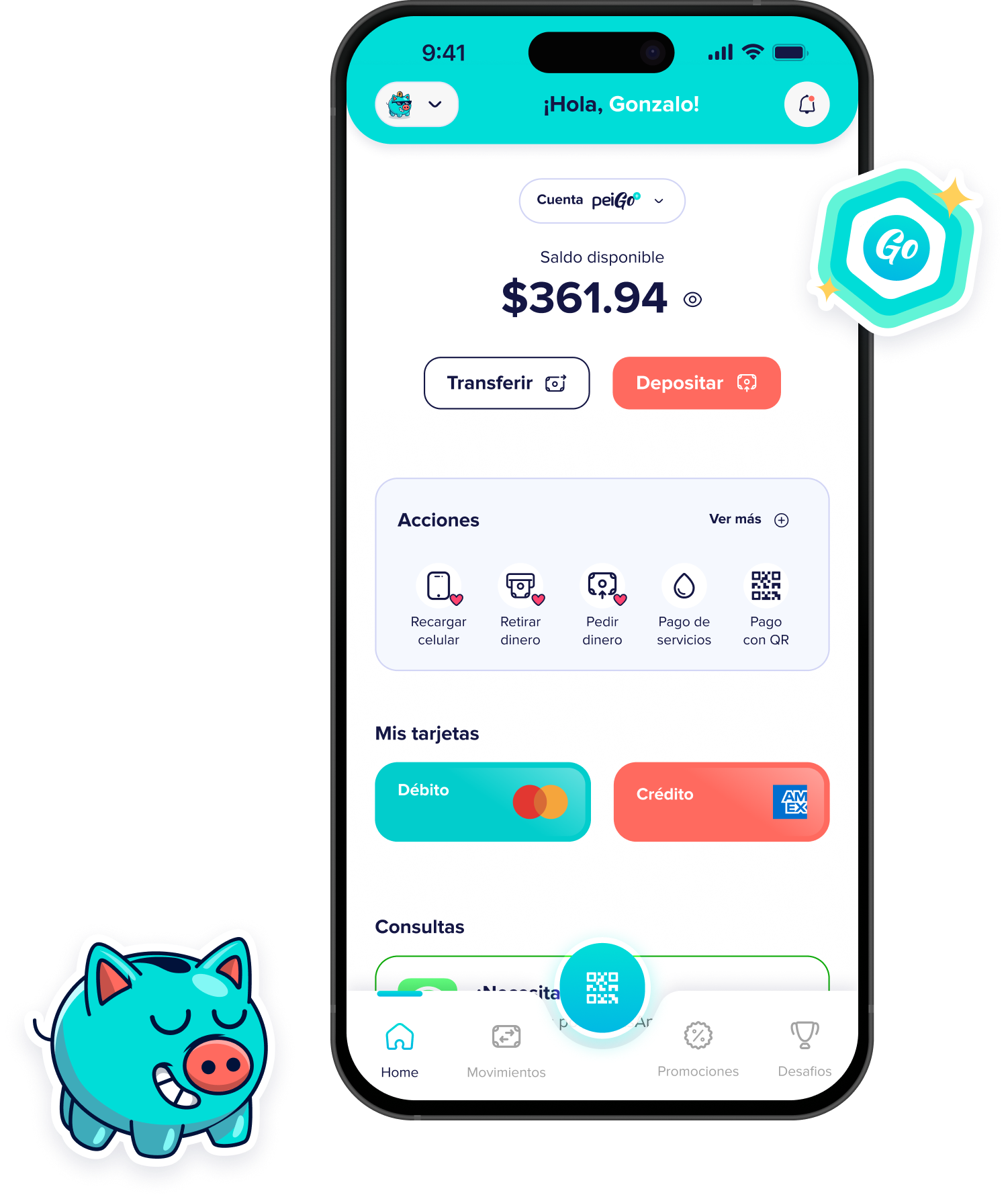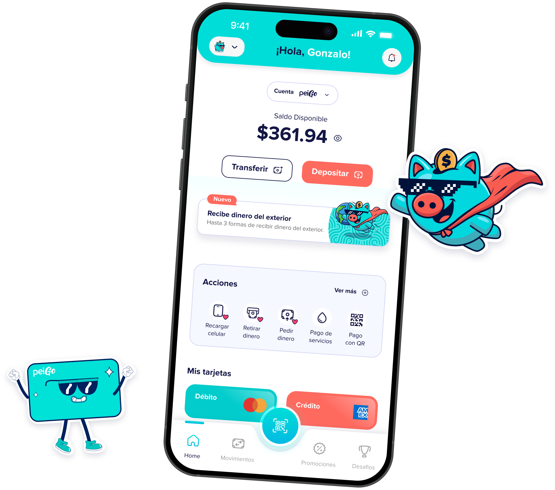 La Cuenta Digital peiGo es una cuenta 100% online que te permite enviar y recibir dinero, pagar servicios, consultar tus movimientos y usar tu tarjeta desde el celular, sin trámites ni papeleo.