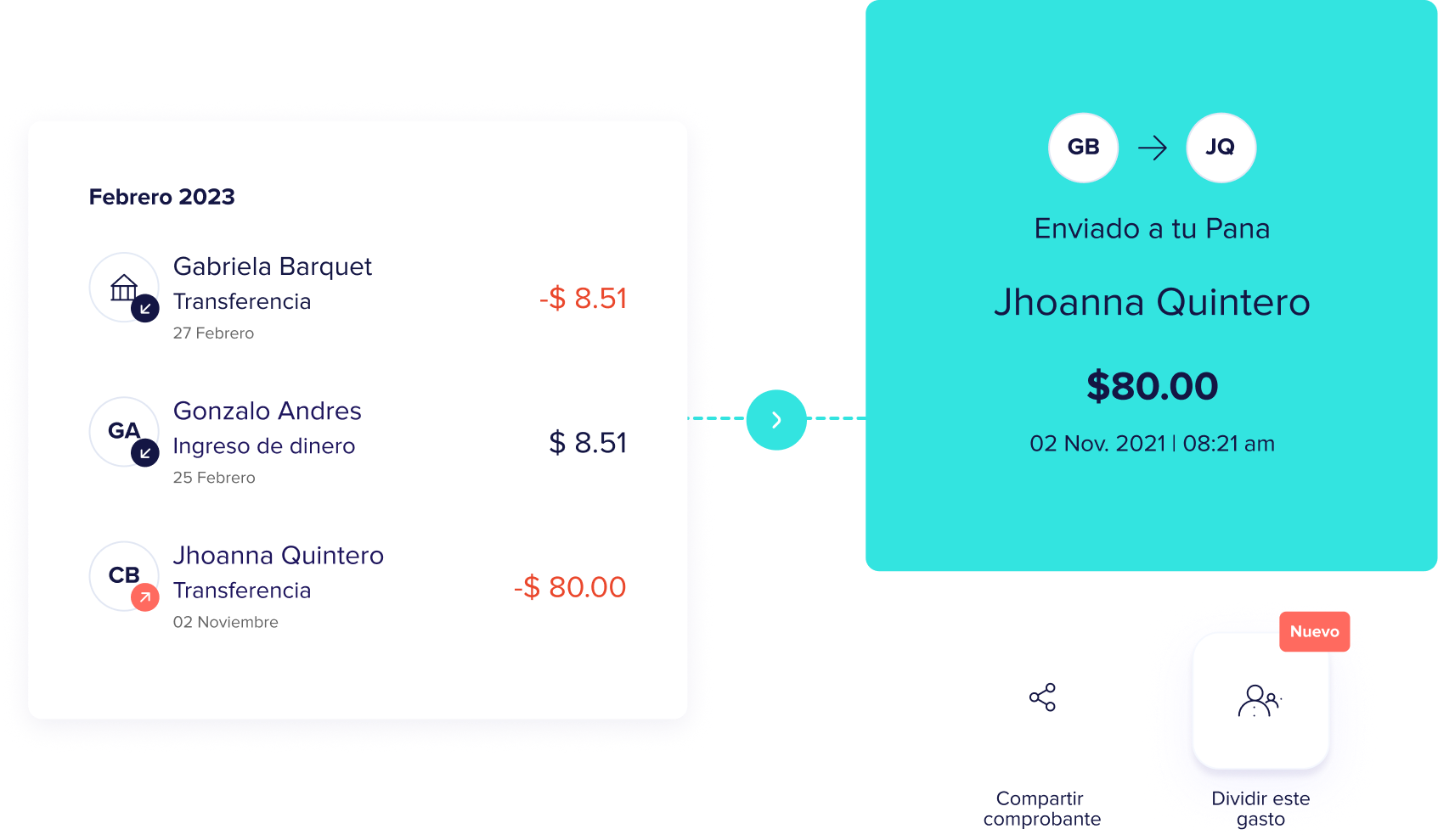 Con peiGo puedes dividir la cuenta y compartir gastos con tus amigos en segundos. Paga desde tu celular y envía el pedido de dinero sin complicaciones.