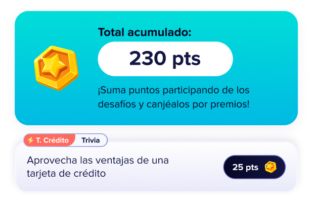Los desafíos cambian cada cierto tiempo. Algunos son recurrentes y otros están disponibles solo por tiempo limitado. Complétalos y acumula tus puntos.